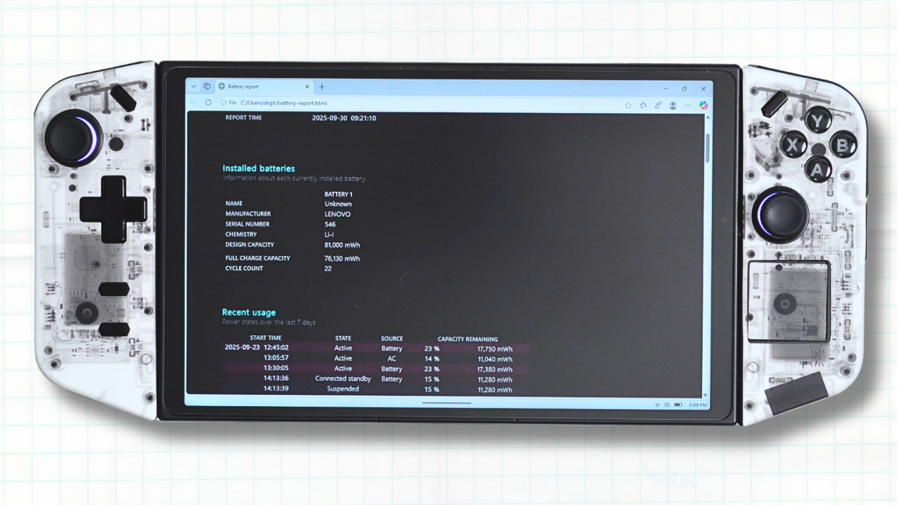 This level of drain reflects a common experience with the Legion Go: frequent charging and limited flexibility for extended sessions away from power.